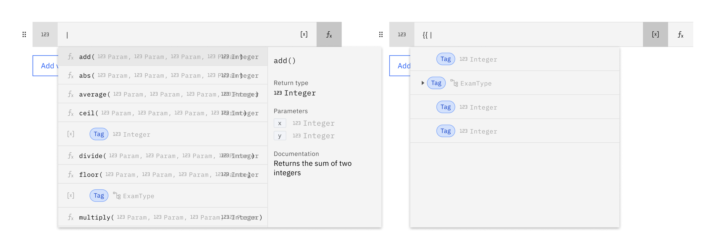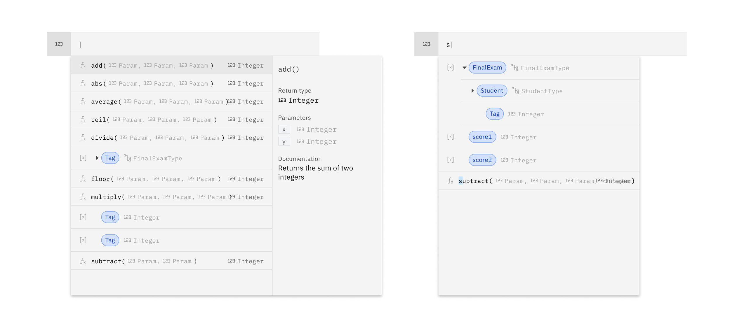 The expression editor component I designed aligns with expected behaviors and micro interactions that developers expect when working with modern programming languages. It’s dynamic, context-aware, and keeps up with a user’s interactions.