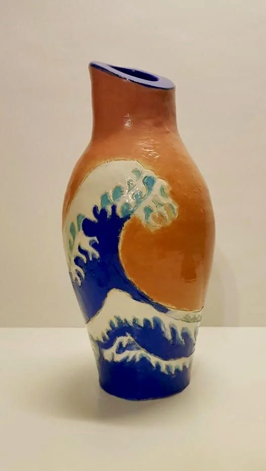 Earthenware vase inspired by "The Great Wave" by Hokusai.